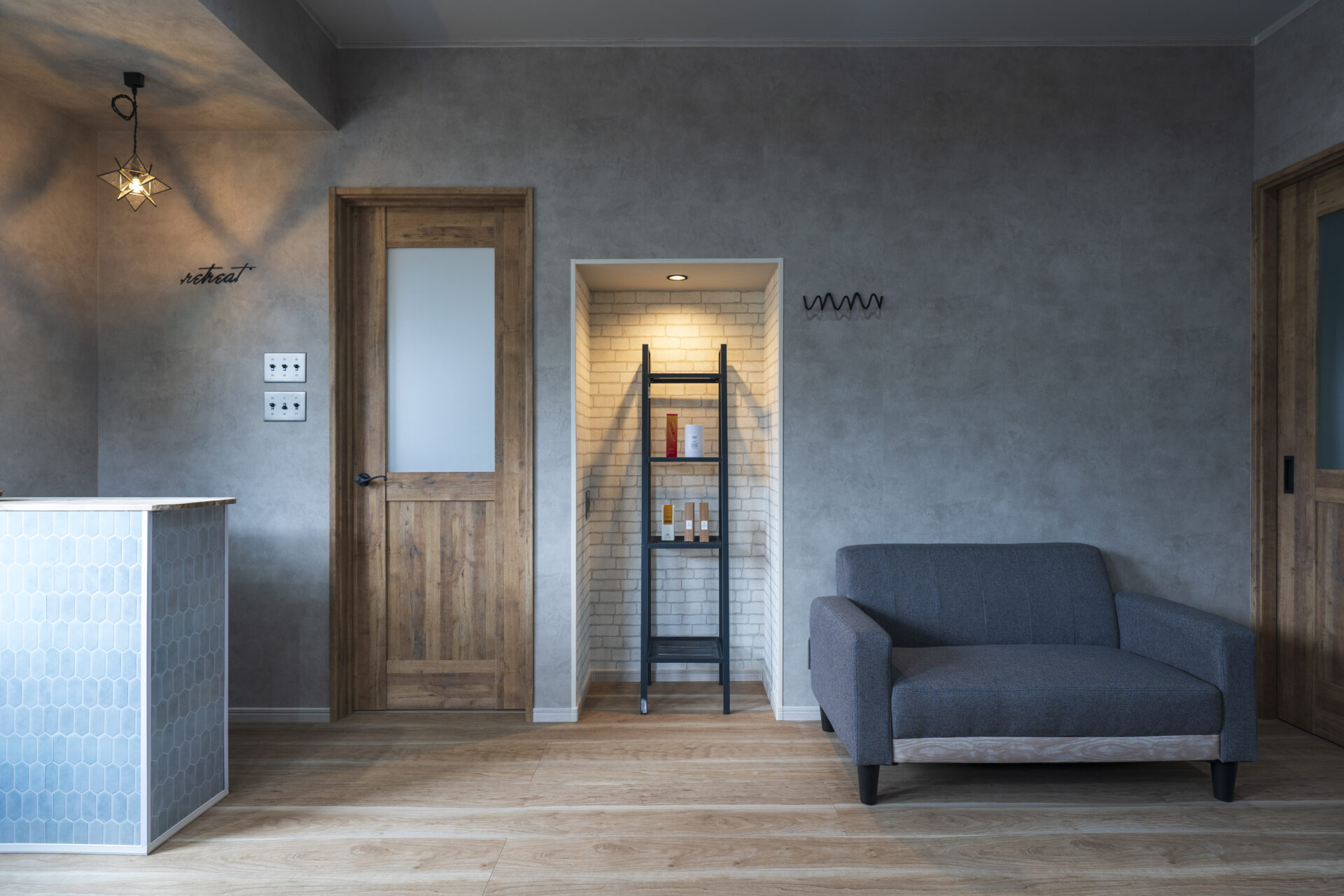 使わなくなった和室を改装・増築をして、プライベートサロンに生まれ変わりました。壁紙や照明、スイッチプレートにもこだわっていて素敵な空間になりました。